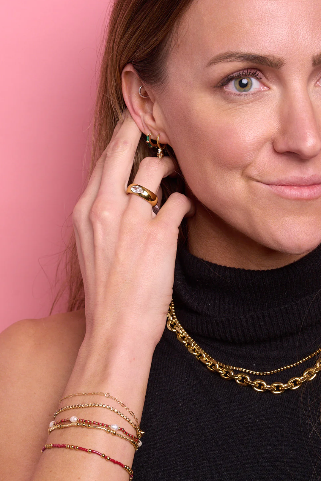 Bold, smooth, and effortlessly cool. The Margo Bubble Gem Ring features a chunky gold band with a sleek marquise-cut cubic zirconia gem set right into the center for a modern, sculptural look. Minimal but statement-making, this ring gives that elevated, cool-girl vibe. Wear it solo to let the design shine, or pair it with thin gold bands for a clean stacked look.