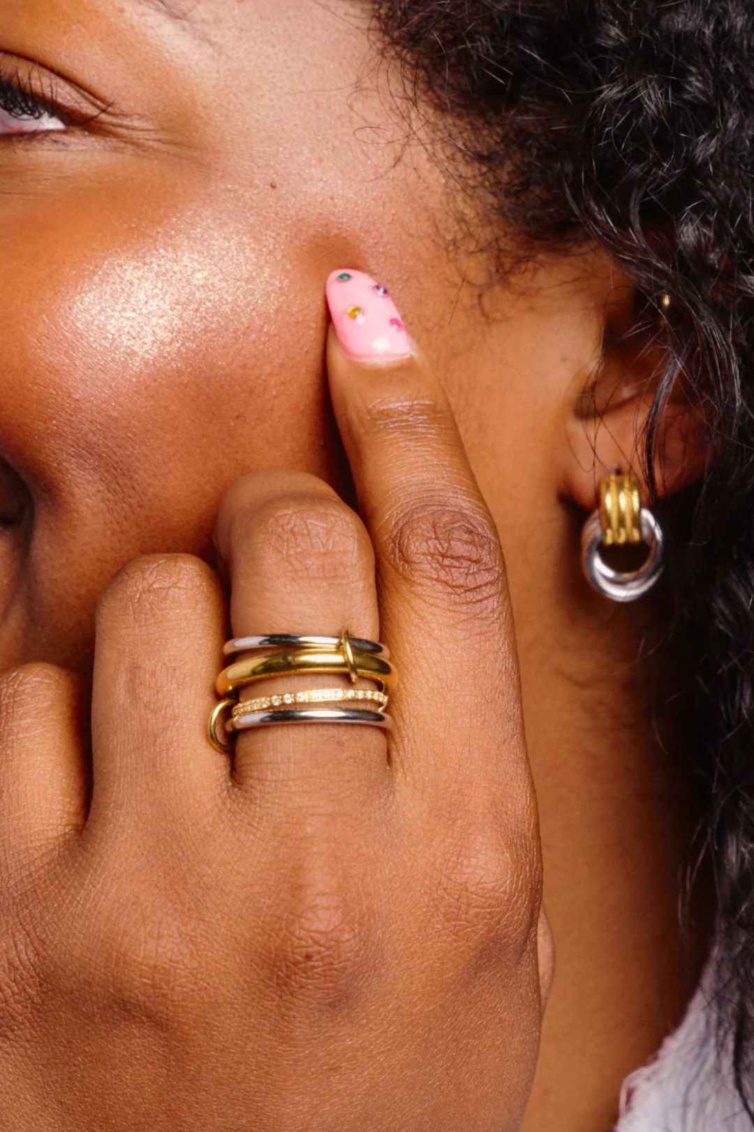 Meet Olivia—your go-to stacked ring set for everyday shine. This mixed metal features waterproof bands in stainless steel with 14k gold and silver plating, accented with delicate cubic zirconia gems for just the right amount of sparkle. Elegant on their own, stunning stacked—these rings are made to mix, match, and shine wherever life takes you.