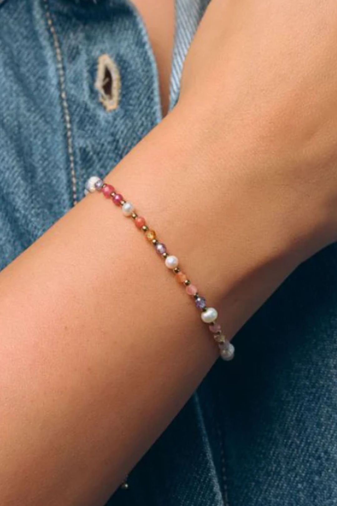 The Penelope Pink Pearl Bracelet is that sweet, everyday piece that adds just enough glow. Designed with multicolor beads mixed with delicate pearls, it brings a playful pop while still feeling feminine and refined. The elastic fit makes it easy to slip on and comfortable for all-day wear, and its waterproof finish means you never have to worry about taking it off. Perfect for summer outfits, beach days, brunch dates, gifting moments, and adding a soft touch to casual looks.