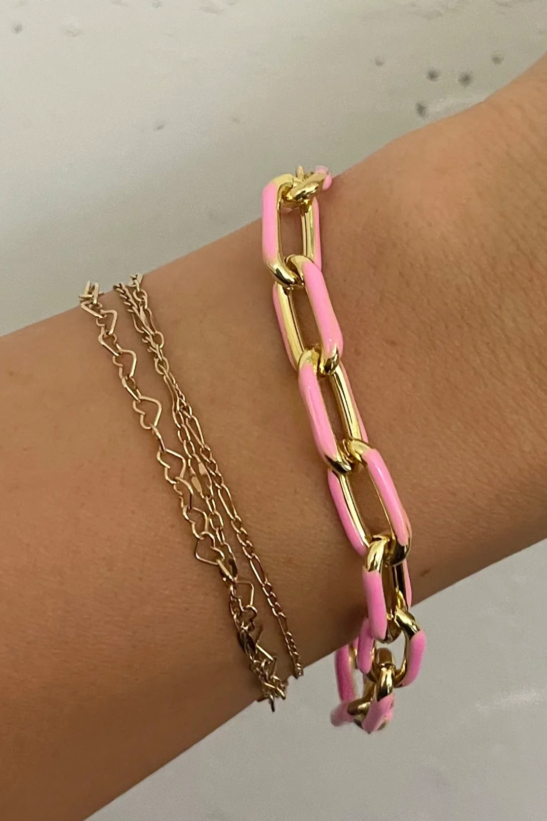 Pretty, playful, and effortlessly chic. This Penny Pink Acrylic Chain Bracelet has chunky links with a white acrylic overlay, paired with luxe 14k gold-plated hardware for a modern contrast. Lightweight yet statement-making, it's the perfect piece to add a pop of color to elevate your everyday stack or stand out all on its own.