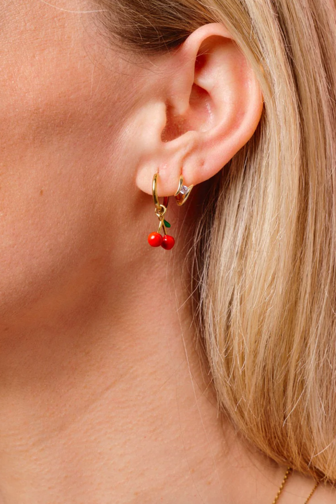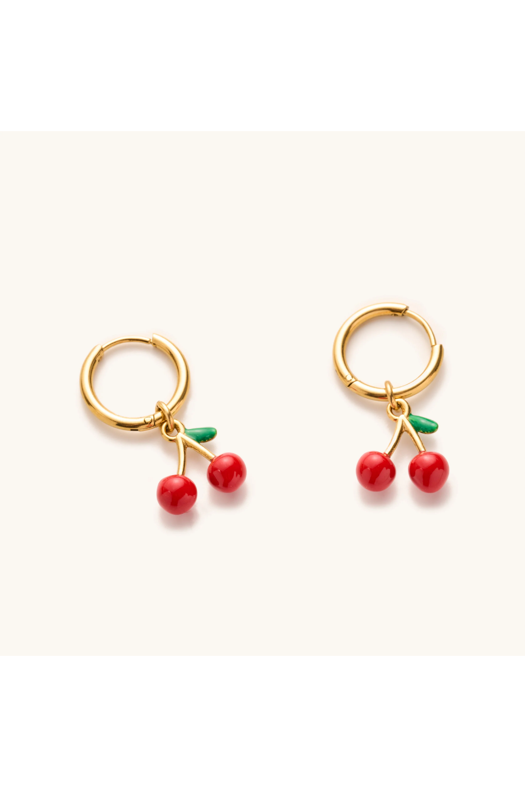 Cherry-picked perfection! Your ears just got sweeter with the Red Cherry Huggies. Featuring tiny red cherry charms dangling from waterproof gold hoops. Sweet, flirty, and made to wear on repeat. Stack it with gold studs for a juicy ear party moment.