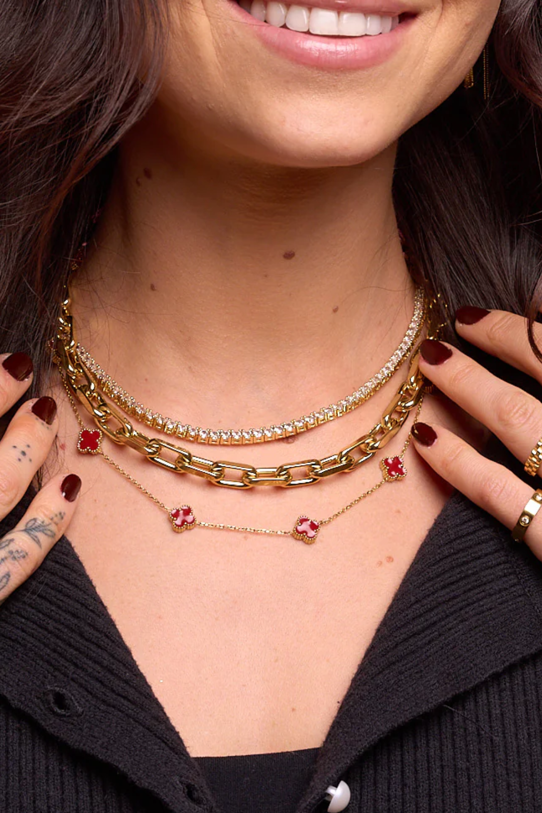 Bold yet sweet—the Red Mini Flora Necklace adds a hint of color and charm to any outfit. Its delicate floral design shines against a 14k gold and stainless steel chain that's fully waterproof, so it stays radiant through every wear. Perfect for effortless everyday elegance, date nights, or gifting to someone who loves a little pop of red. Layer it with thin gold chains for a modern stack, or pair it with the Red Mini Flora Bracelet for a matching, statement-making duo.