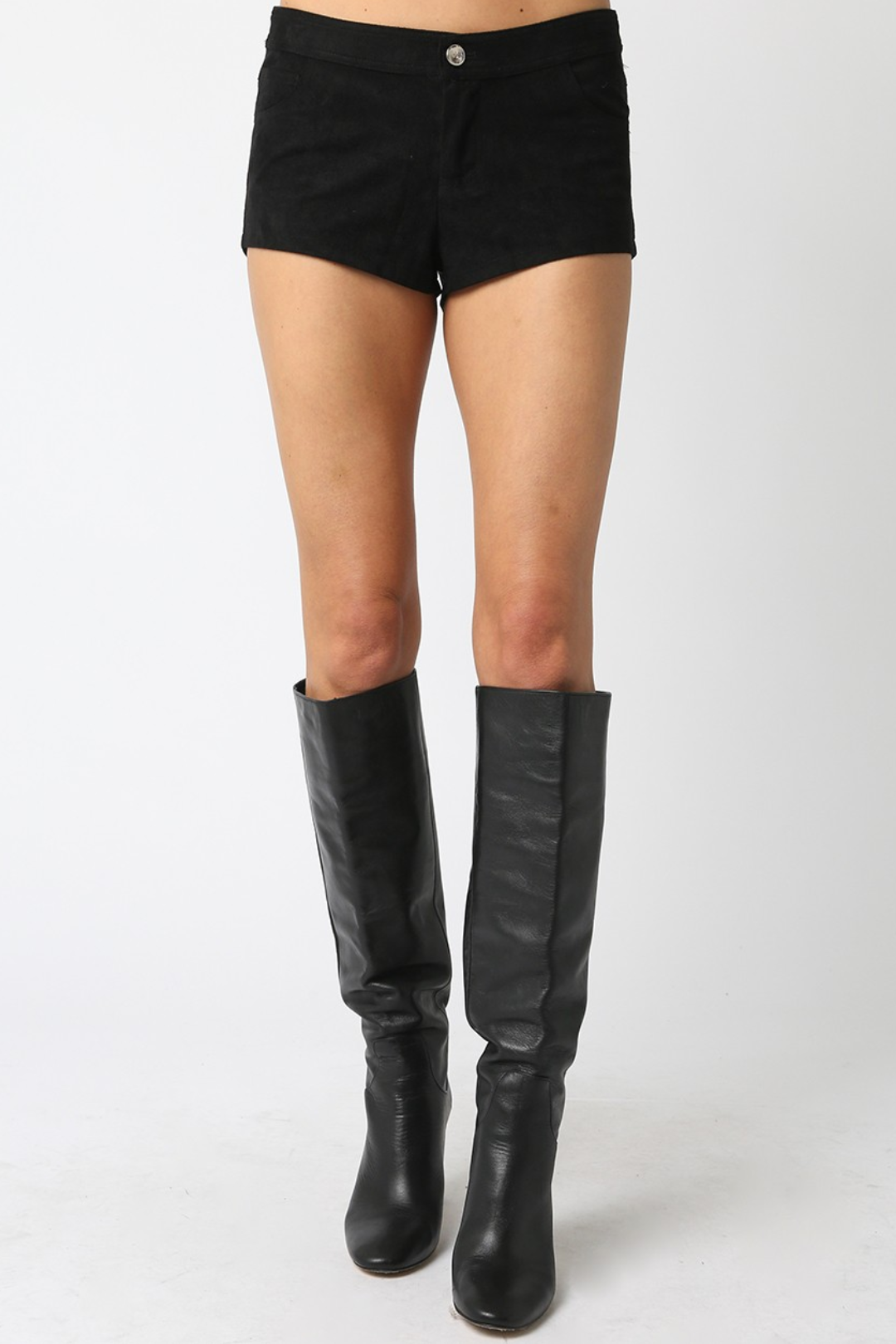 These ultra-sleek Suede Micro Shorts bring instant attitude with their soft texture and barely-there silhouette. Featuring a front button closure and body-skimming fit, they're the ultimate statement piece for nights that call for bold energy. Perfect for girls' nights out, concerts, or any occasion that demands a little edge and a lot of confidence.