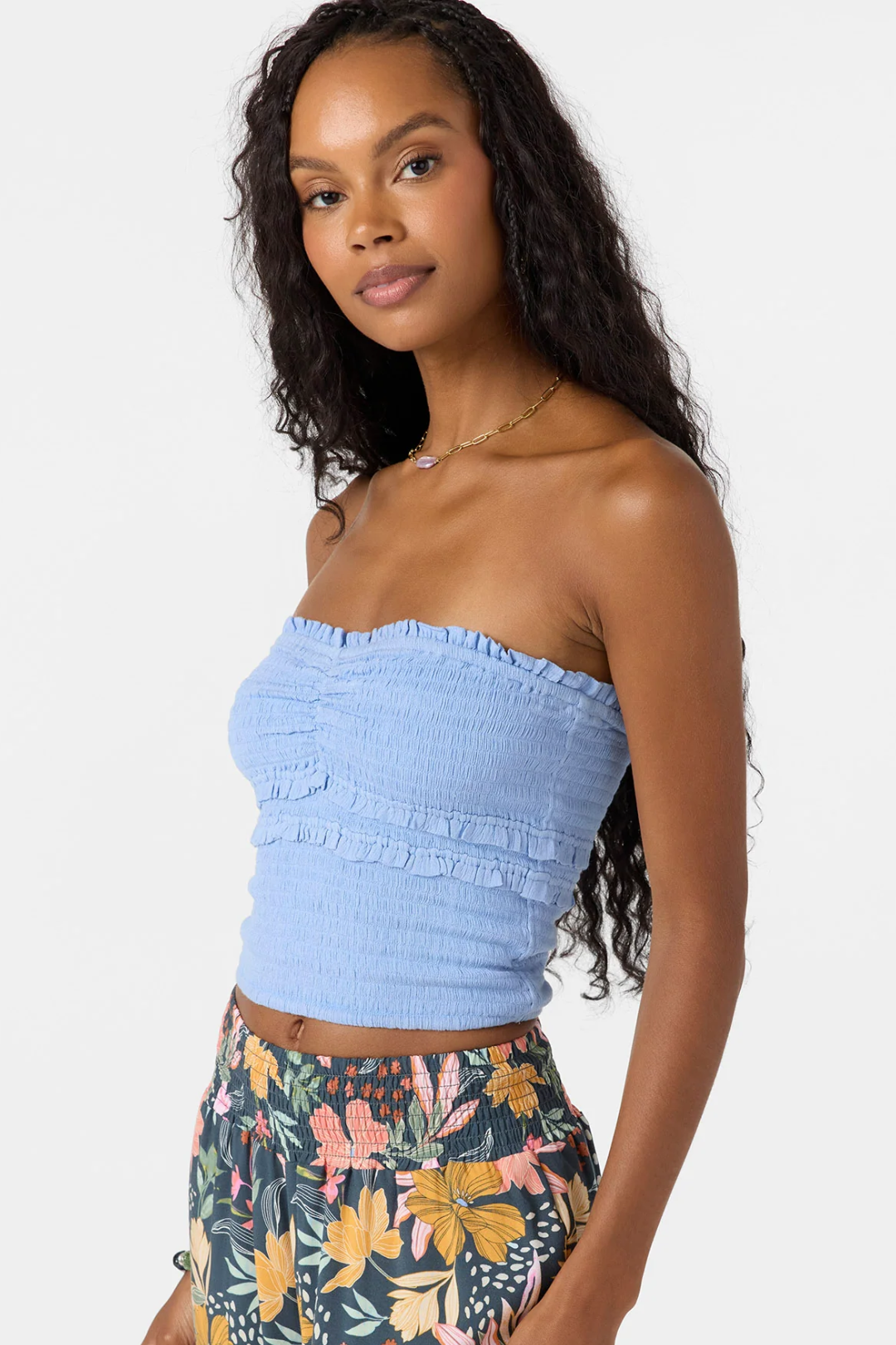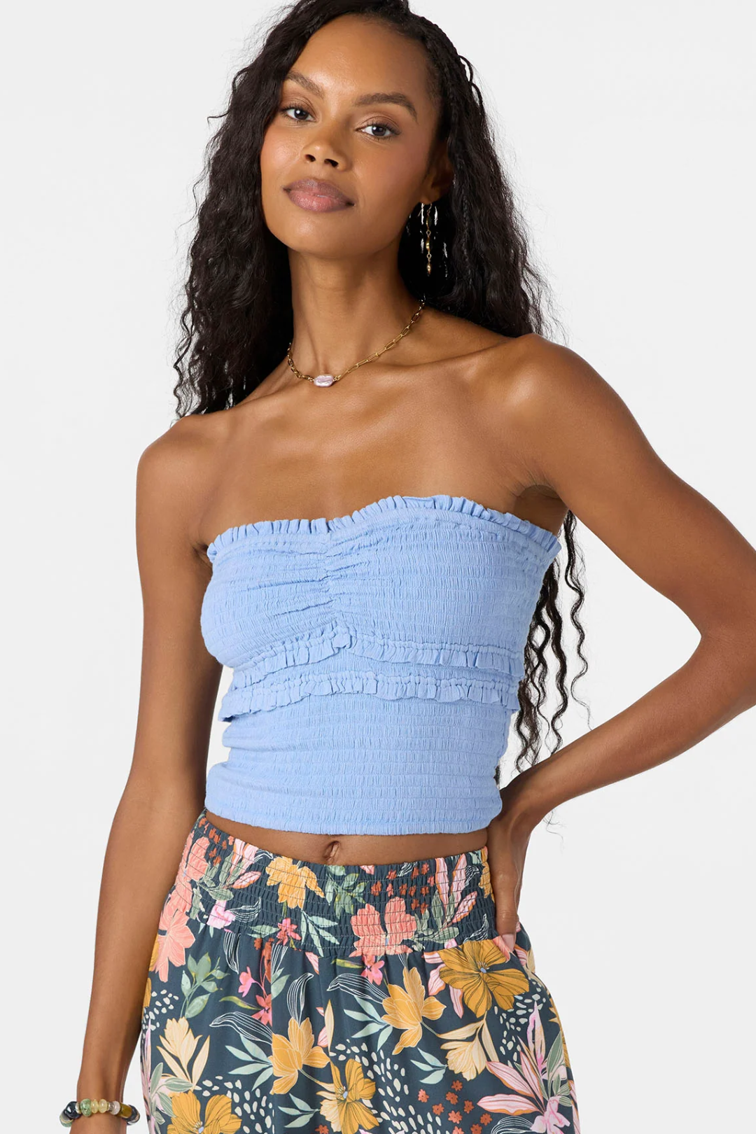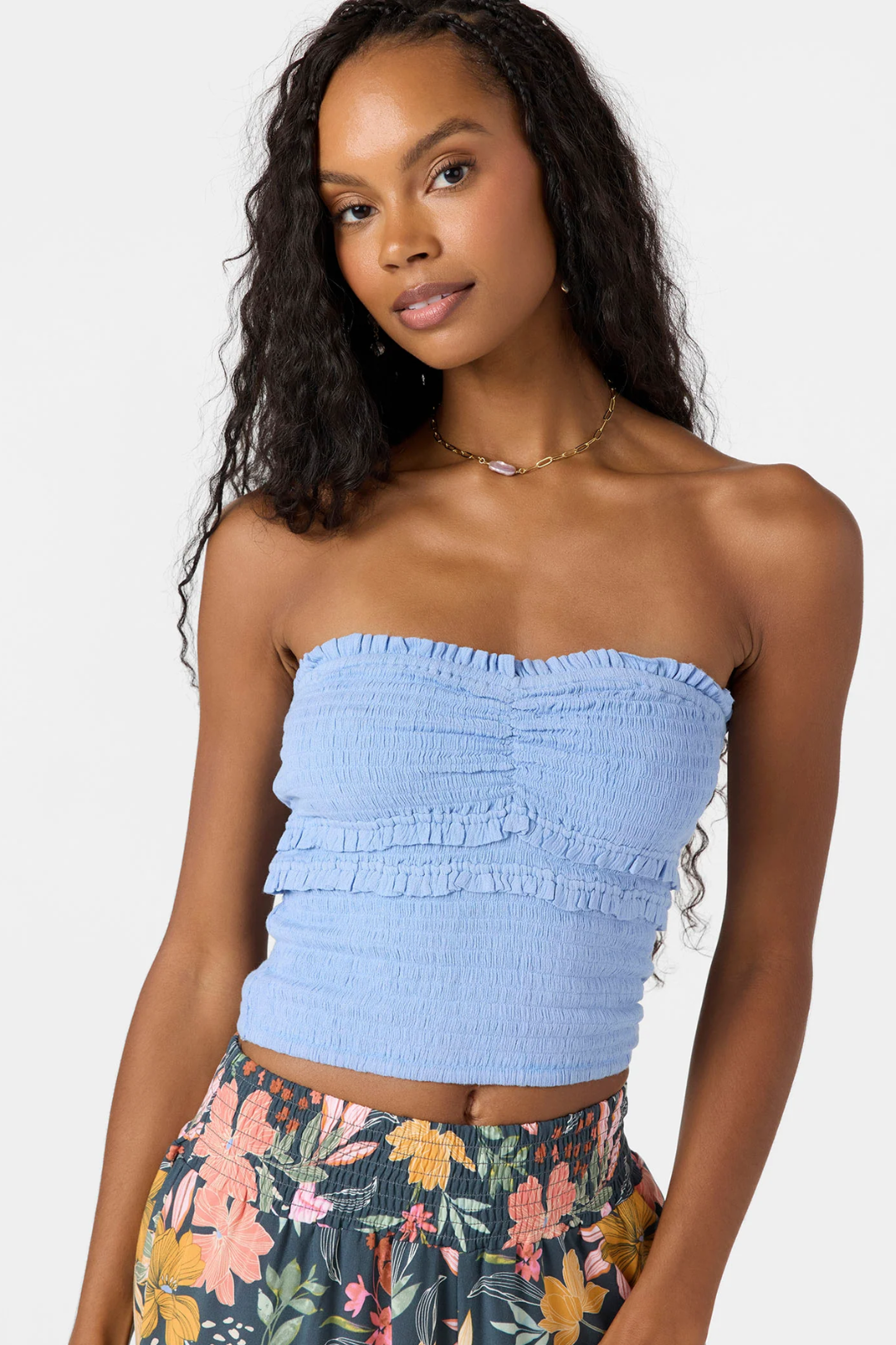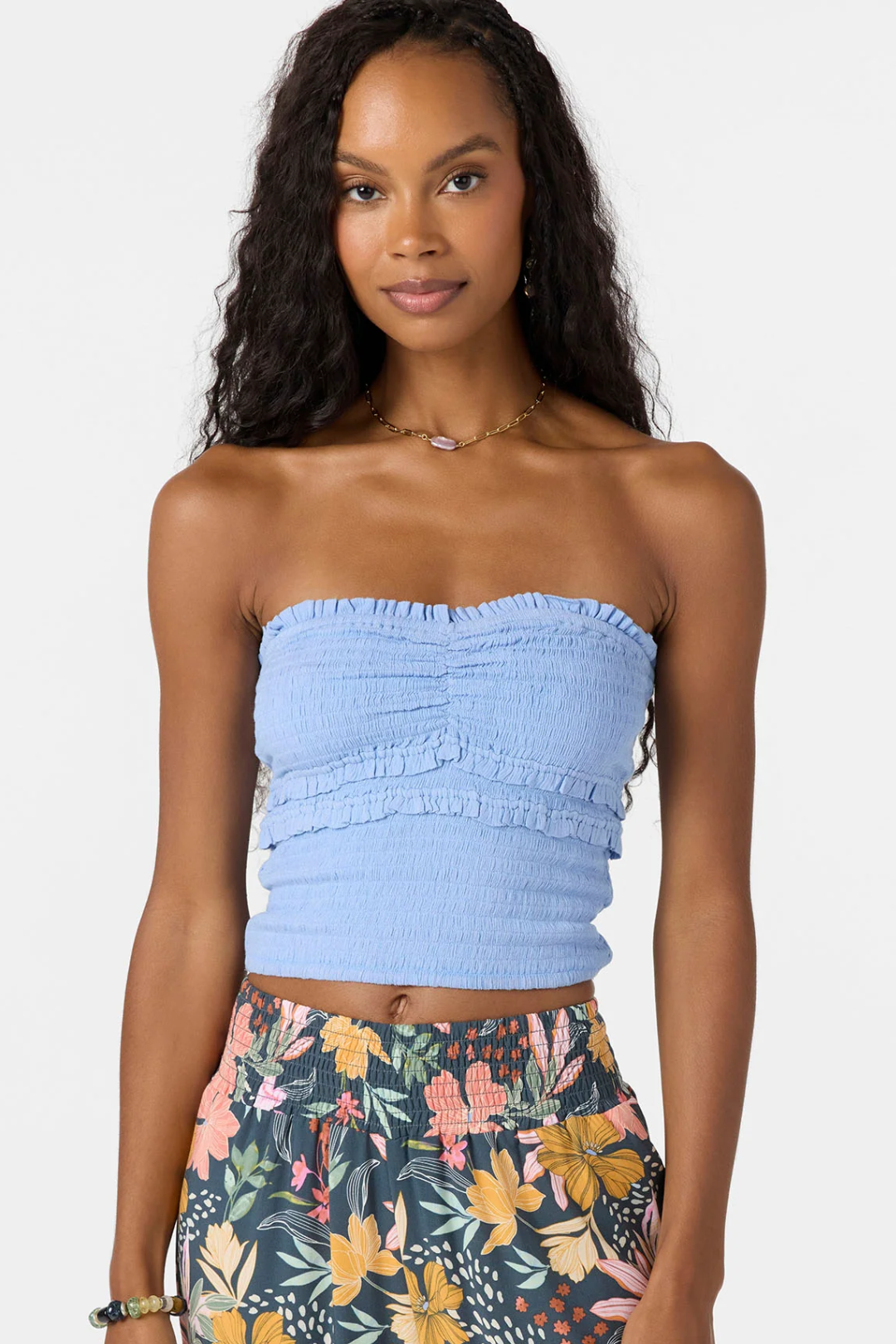 The Dedra Tube Top from O'Neill is your new summer staple. Featuring a flirty sweetheart neckline and a fully smocked body that hugs you just right. The skim-length cut hits perfectly at the waist for that effortless look, while a delicate ruffle detail adds a soft, romantic finish. Perfect for rooftop hangs, beach strolls, brunch dates, or layering under your fave oversized jacket.