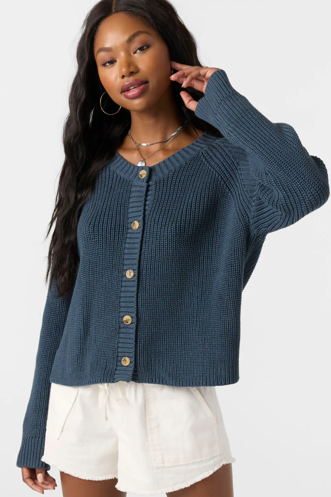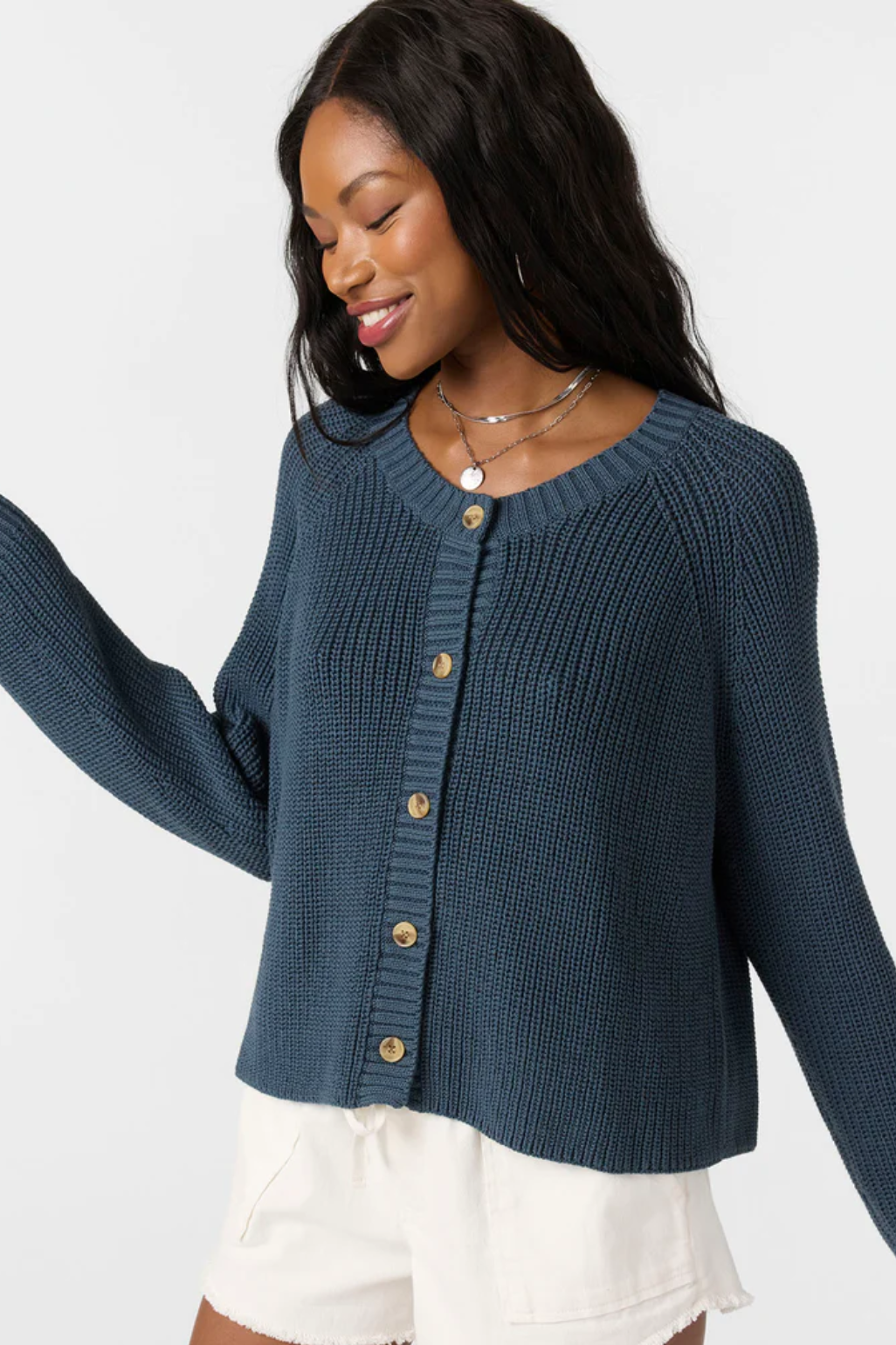 Cool days made better with this cozy-chic Kerris Sweater from O'Neill. Comes in a skimmer length with a button front and raglan sleeves. This piece is perfect for layering but warm enough to wear on its own. Ideal for coffee runs, breezy afternoons, and every cool-weather adventure in between.