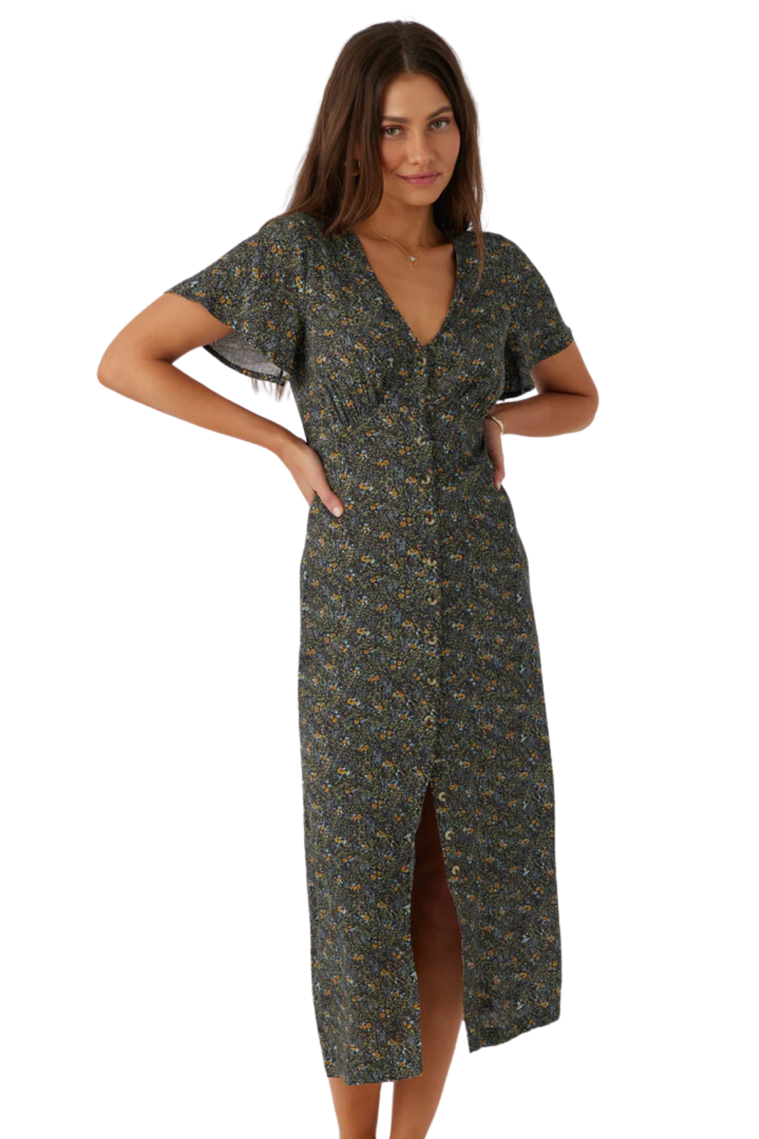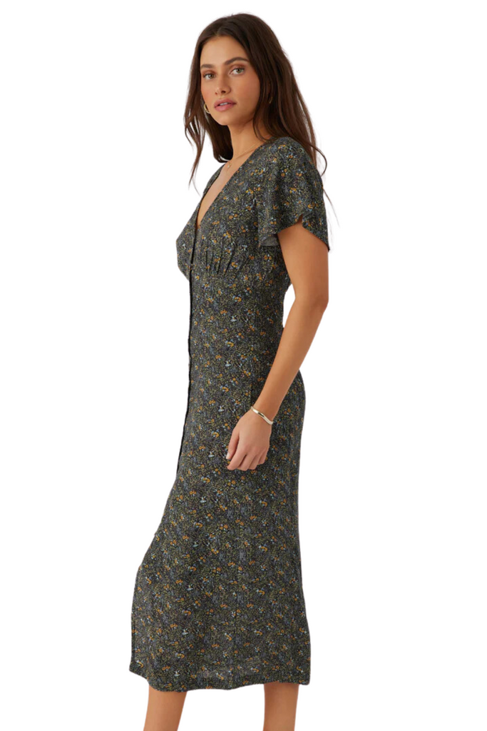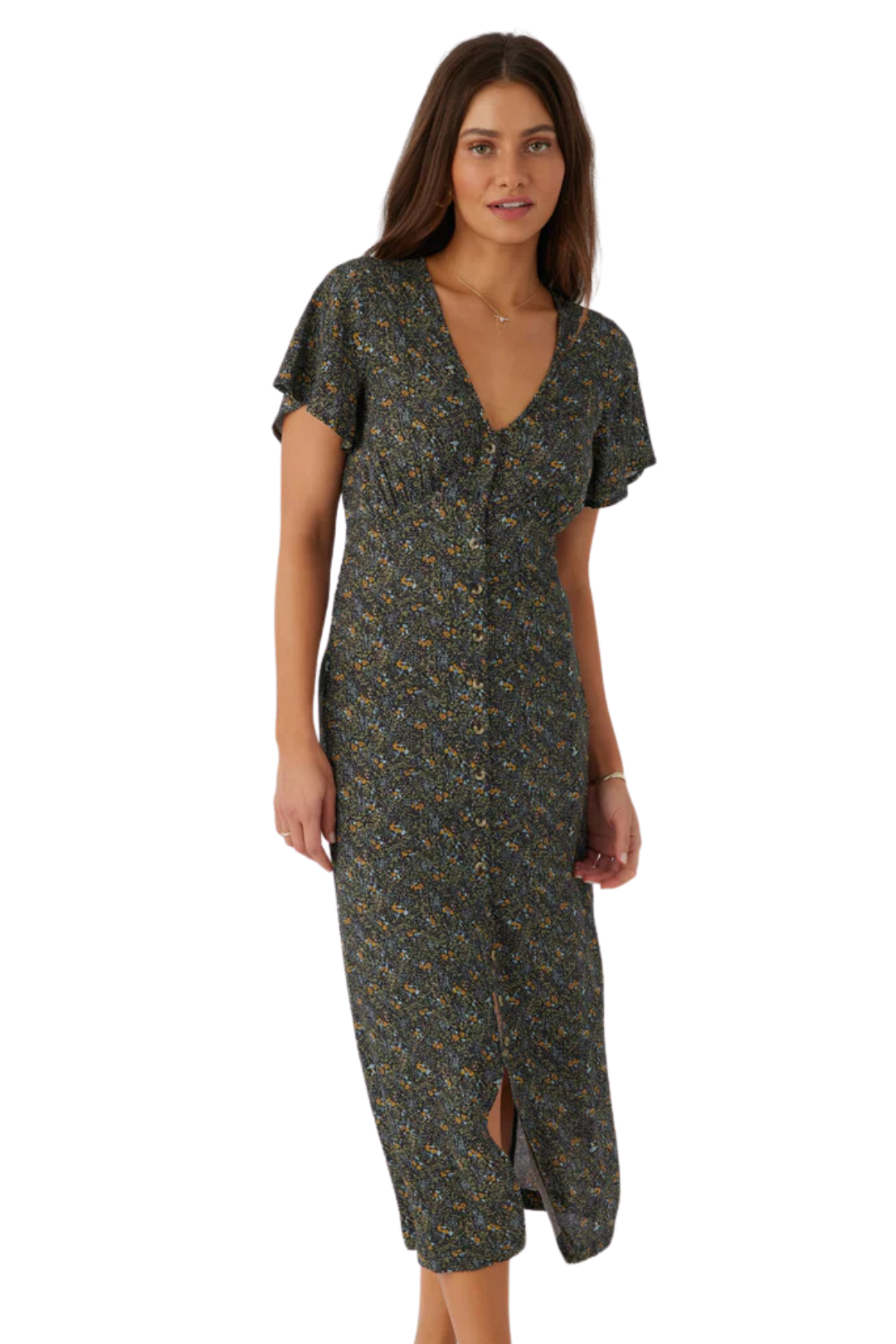 This lovely Rayney Midi Dress will bring an updated look to a classic 'fit. It's an allover print midi dress with flutter sleeve detail, v-neckline, front button closure, and back waist smocking. Perfect to wear for casual dates, occasions, or getaways!