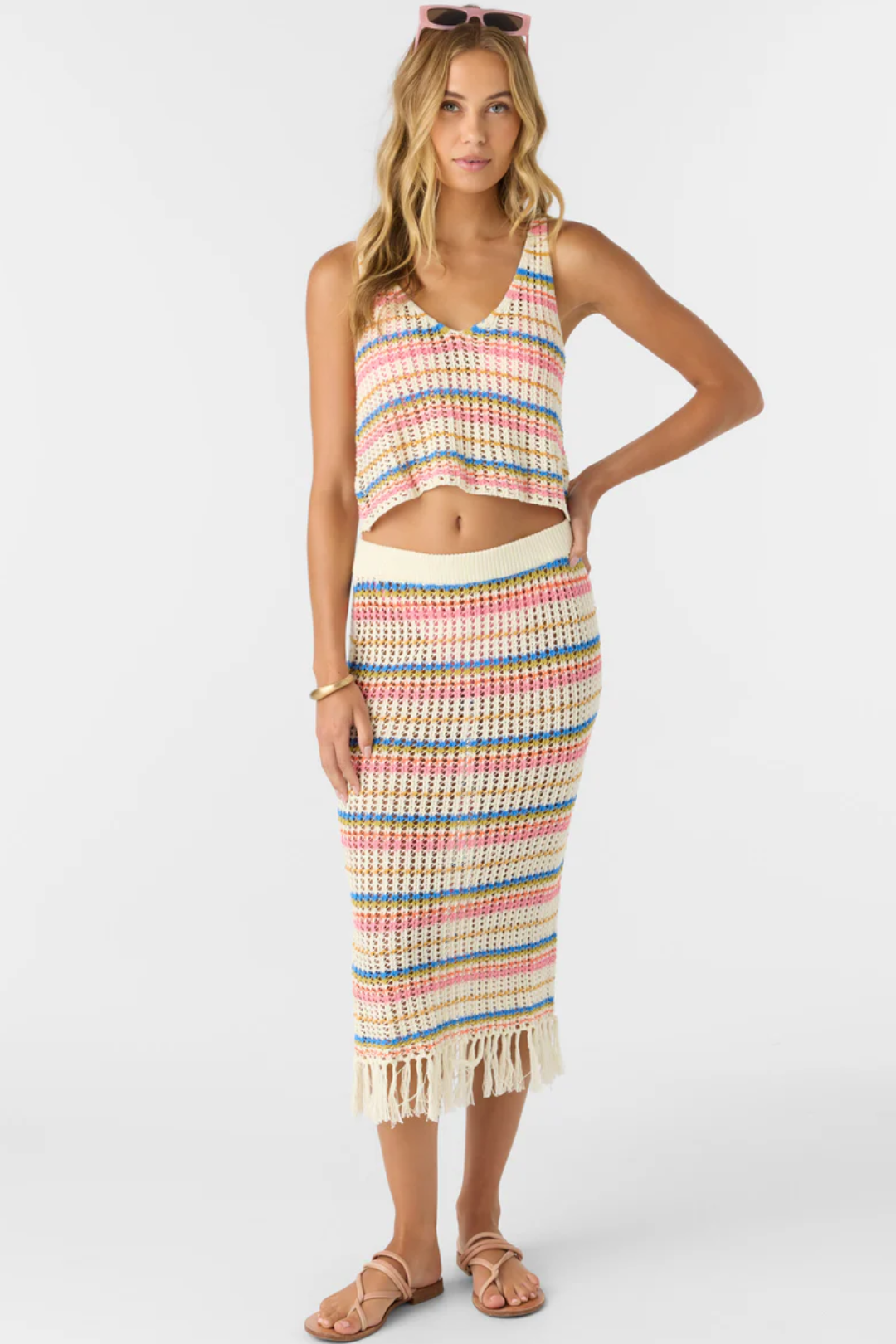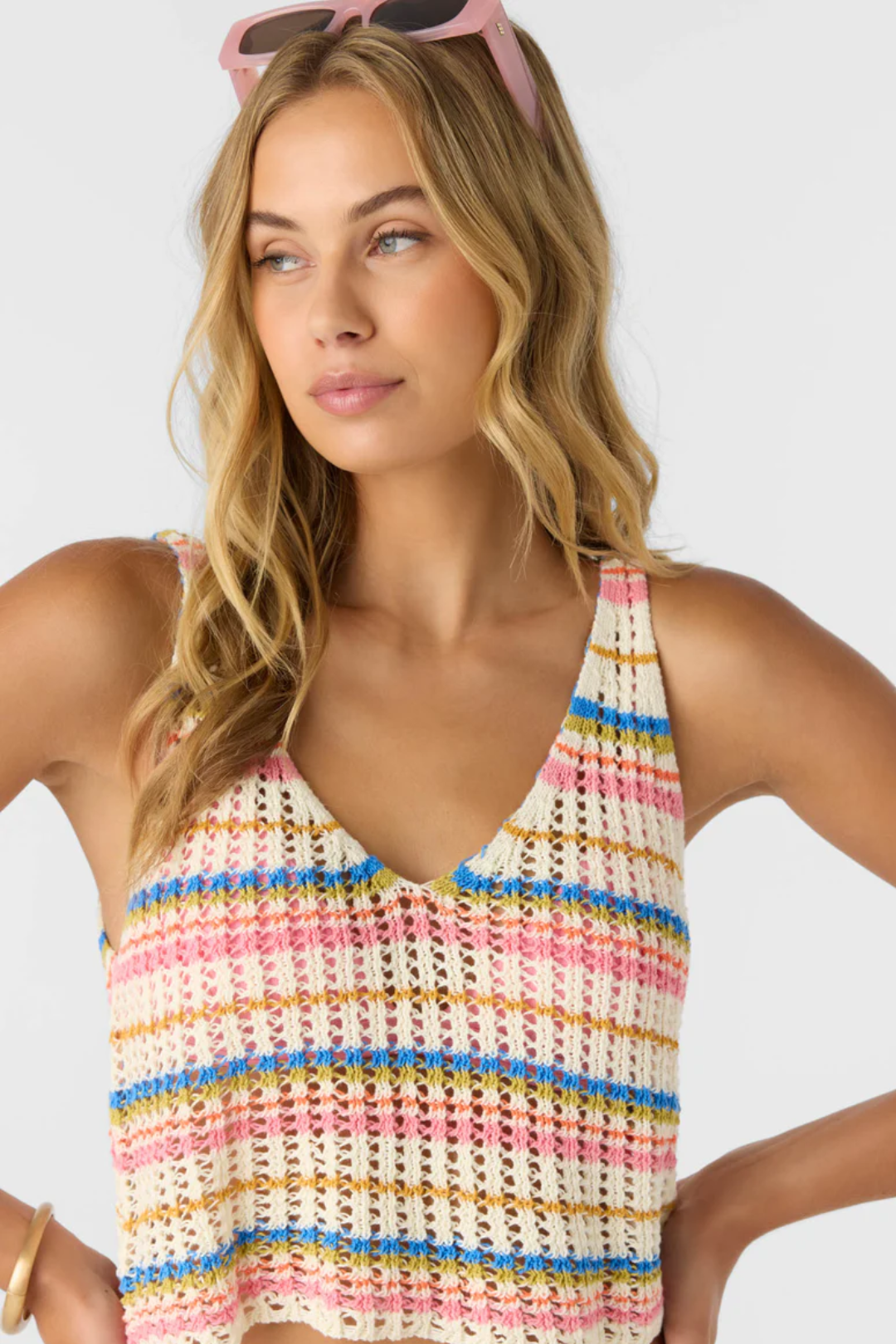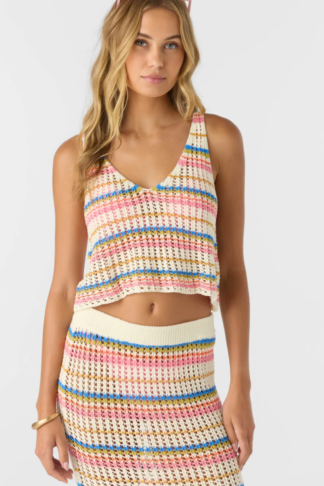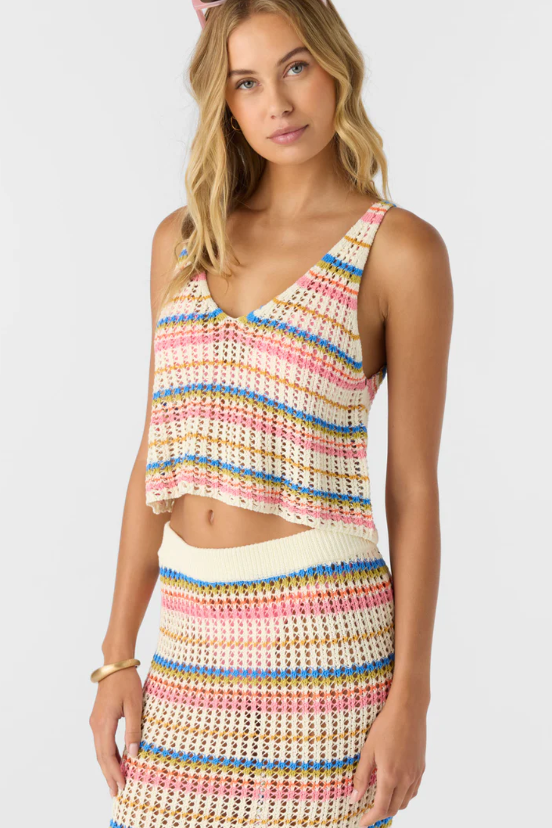 Light, effortless, and chic. The Ryan Stripe Tank from O'Neill is made from breathable cotton crochet with a flattering V-neckline, and the scooped back makes it feel fresh and feminine, while the bold stripes bring a classic summer vibe. Perfect for layering or wearing solo on sunny days.