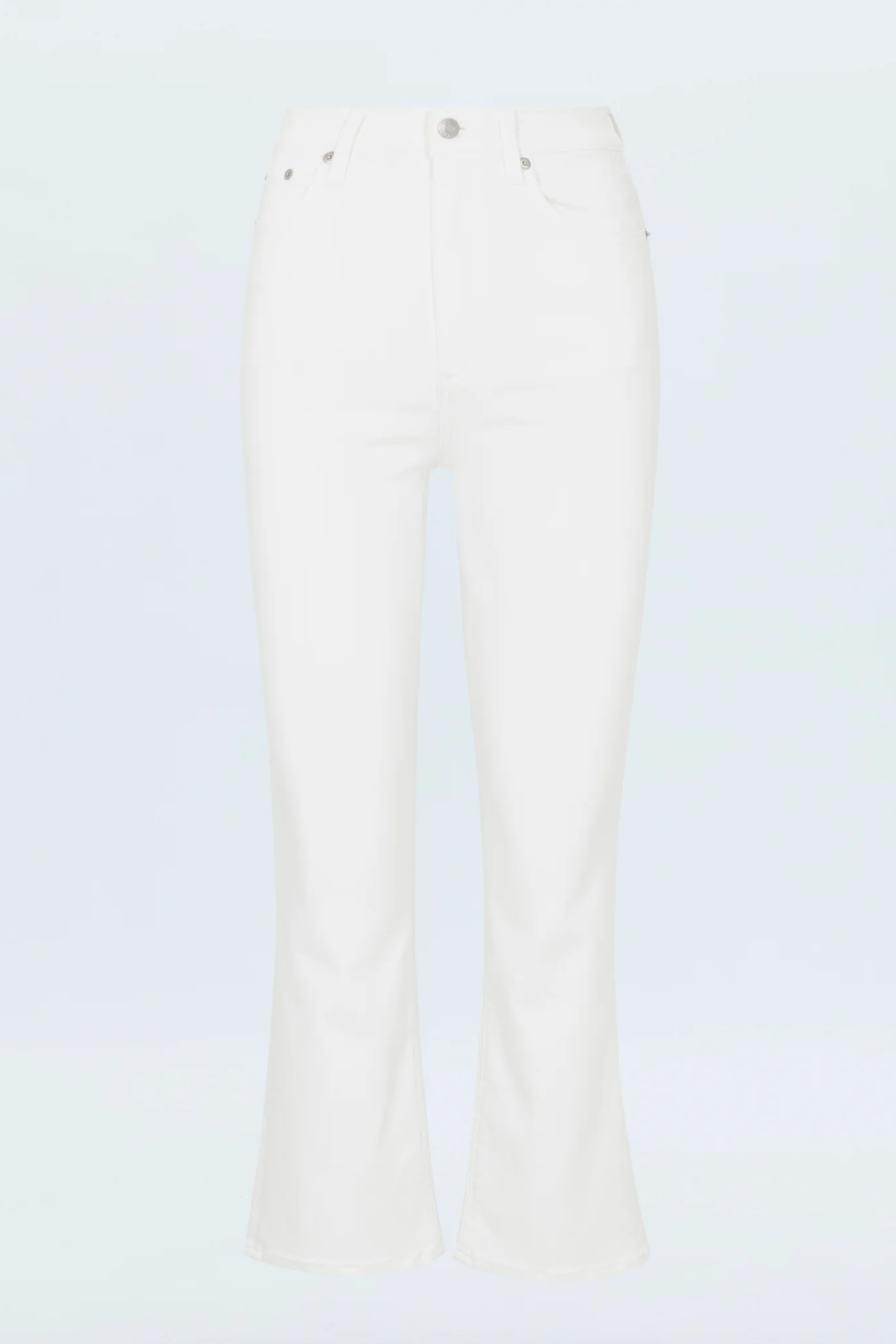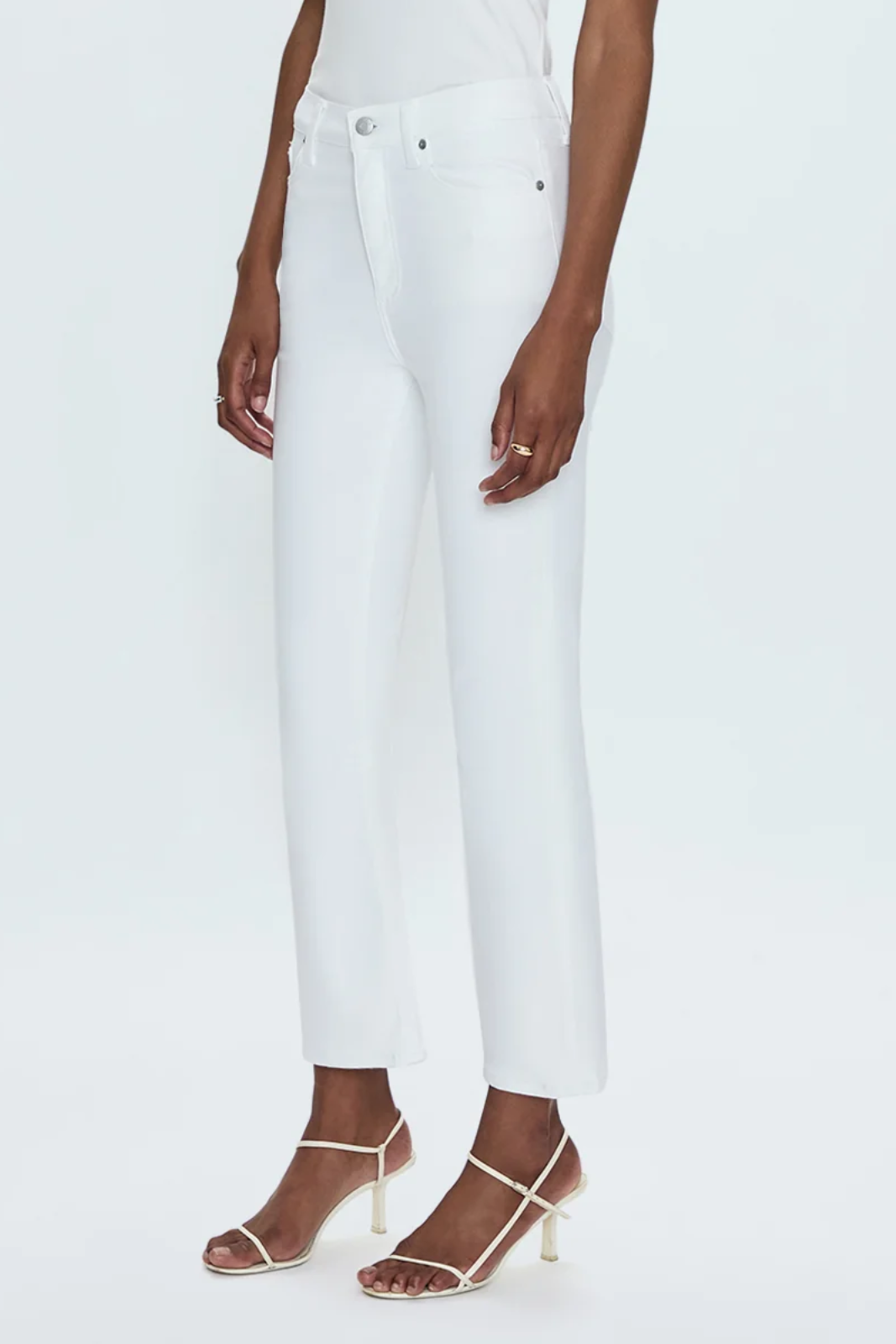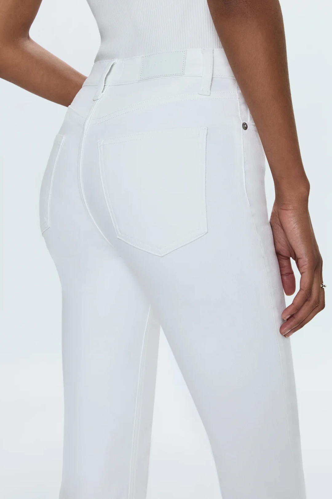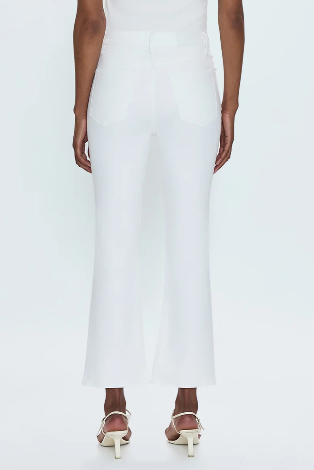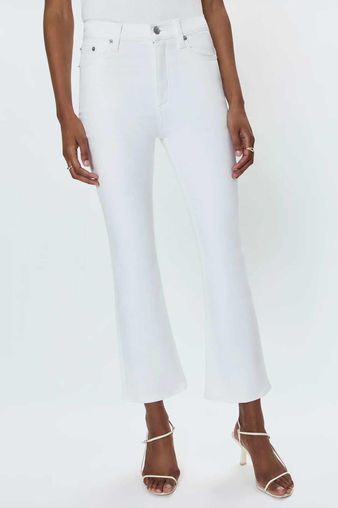 Always look on point with the Lennon High Rise Crop Boot Jean in Vivid White. Crafted from Pistola's signature comfort-stretch denim in a classic white wash. Perfect for any occasion such as coffee dates, vacations, or business meetings.