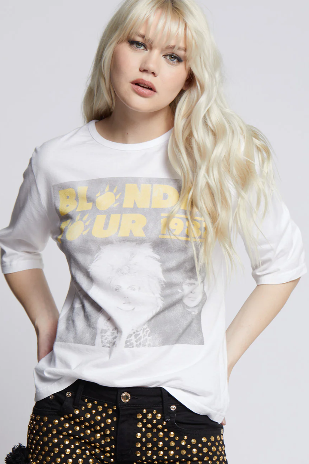 Vintage energy, forever iconic, and basically a closet MVP. This Blondie 1982 Tour Tee feels like it was pulled straight from a merch table in the early '80s. With its washed white base and faded Blondie tour graphic, it gives the perfectly broken-in look we all obsess over. Perfect for concert nights, casual weekends, road trips, coffee runs, festivals, or anytime you want that off-duty cool-girl vibe.