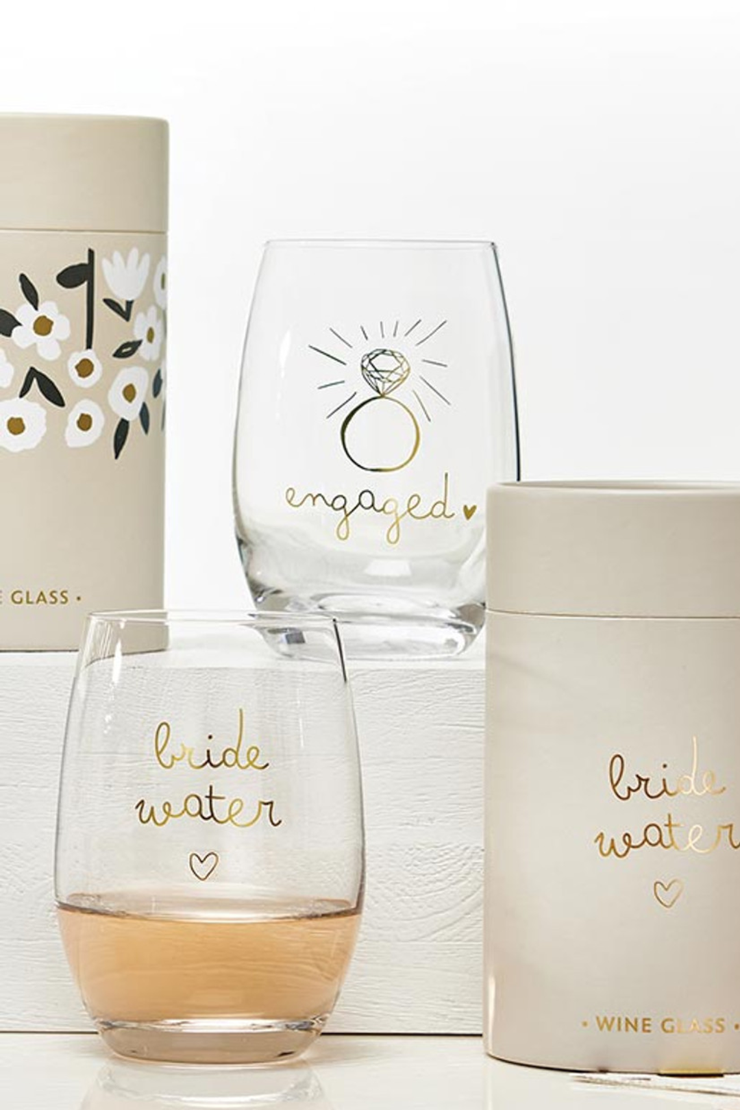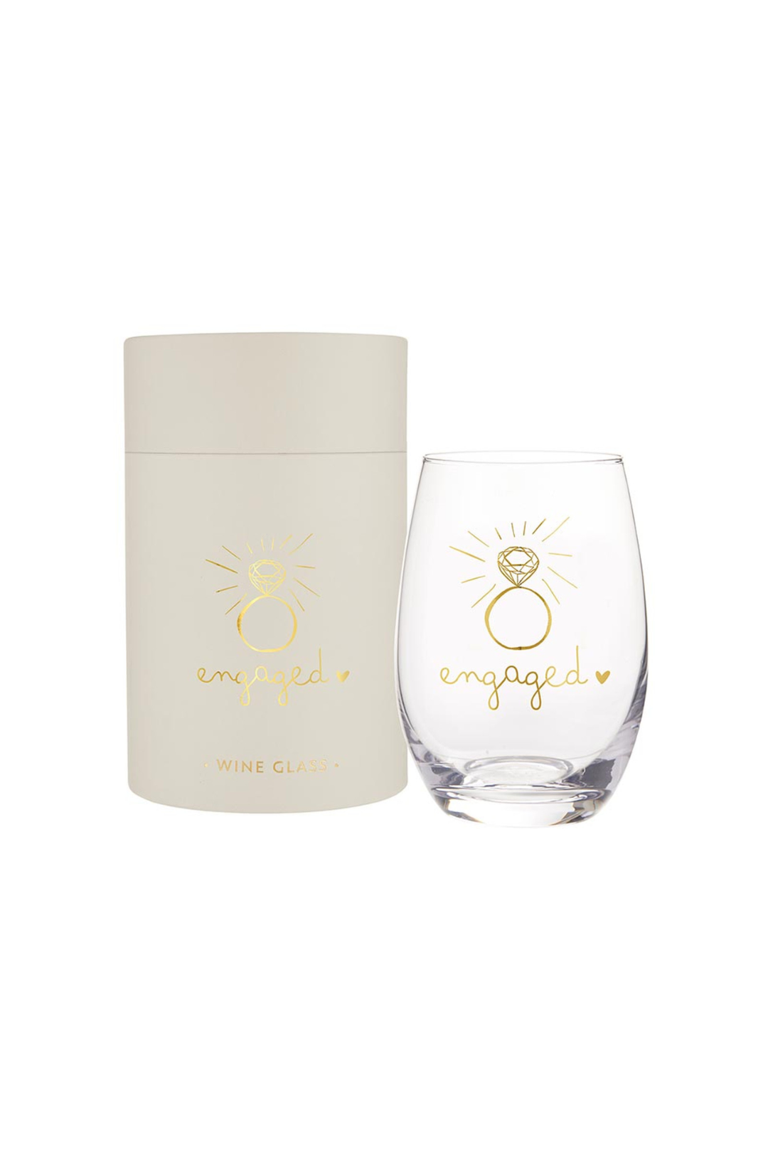 This stemless wine glass is the perfect way to sip and celebrate your just-said-yes era. Finished with delicate gold foil lettering and a dreamy ring design, it feels chic, sentimental, and totally gift-worthy. Whether it's wine night or wedding planning mode, this glass makes every pour feel special.