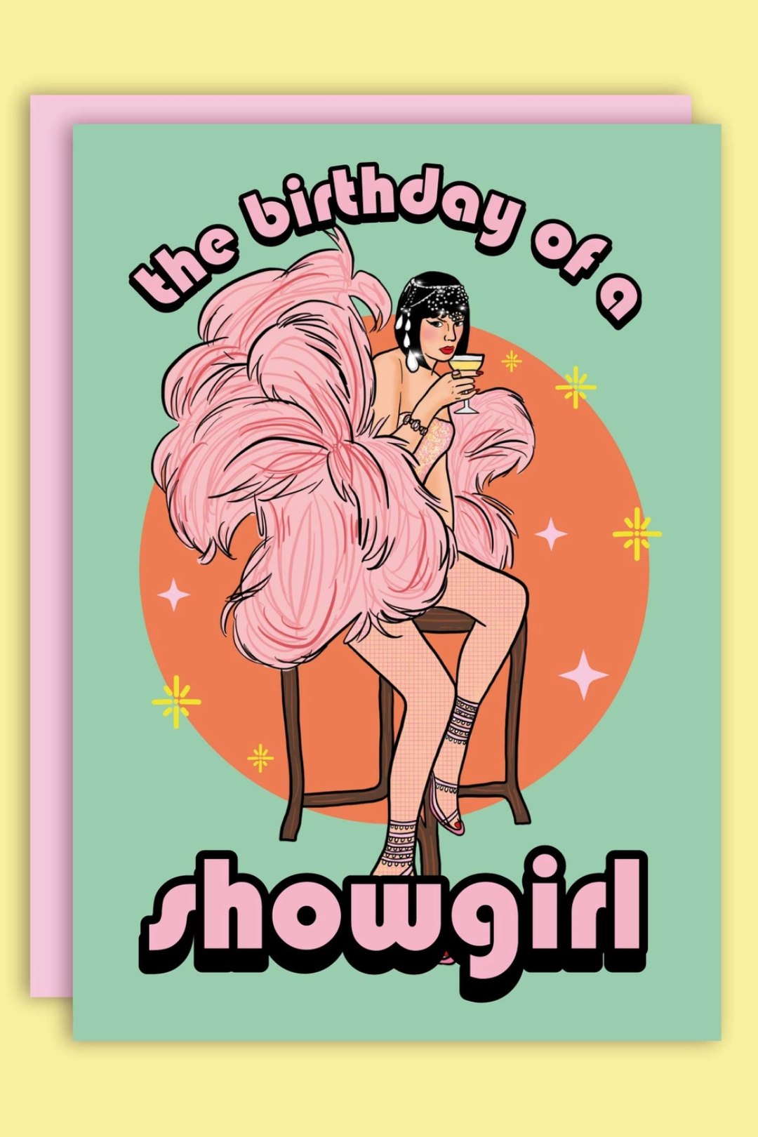 Give them the spotlight they deserve with this glamorous birthday card. It's made for the friend who always makes an entrance—sequins, feathers, drama, and all. Featuring a show-stopping illustrated showgirl moment on a vibrant backdrop, it's bold, fun, and guaranteed to make them feel like the star of the night. This card is the ultimate celebration of fabulousness.