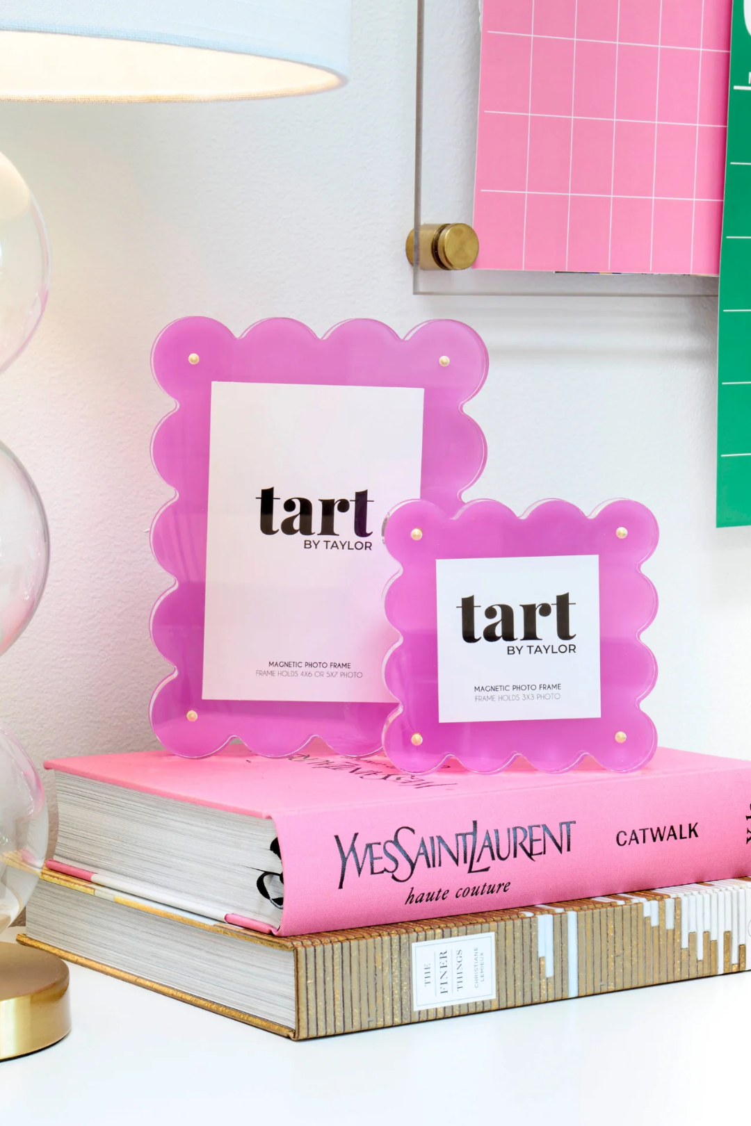 The Mini Acrylic Picture Frame is a cute way to display your cherished memories. Photos displayed in this acrylic scalloped frame add a fun touch that will be the highlight of any space. Not only are they lovely on desks and nightstands, but they also make wonderful presents!