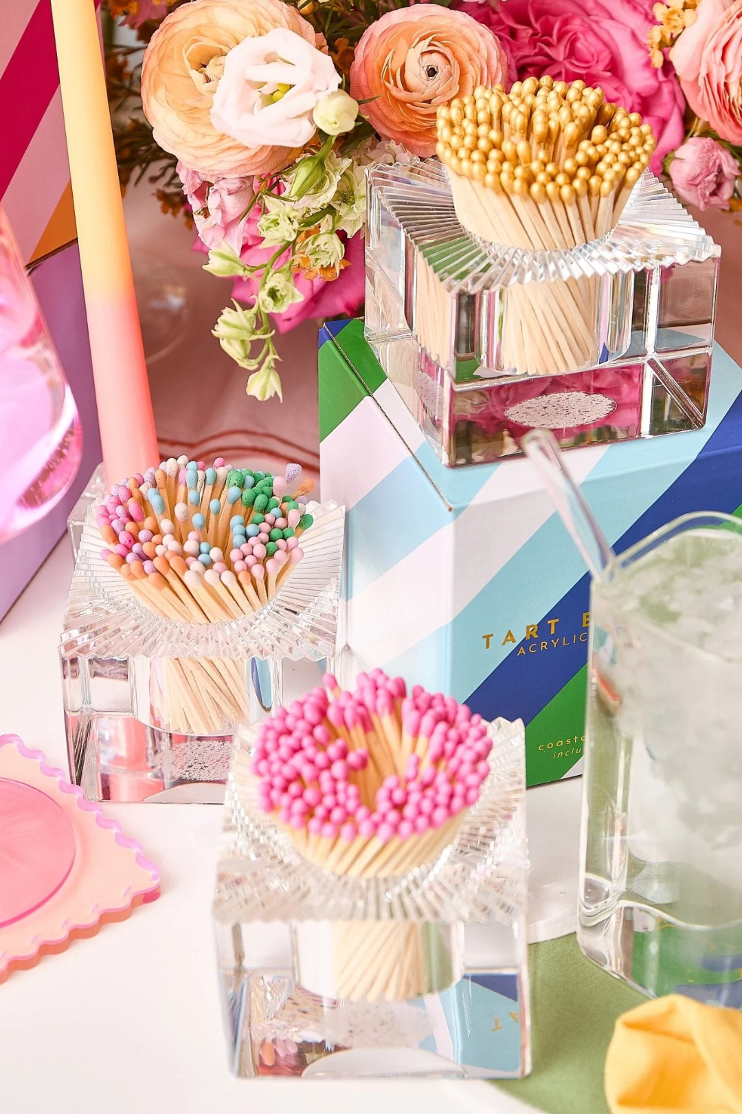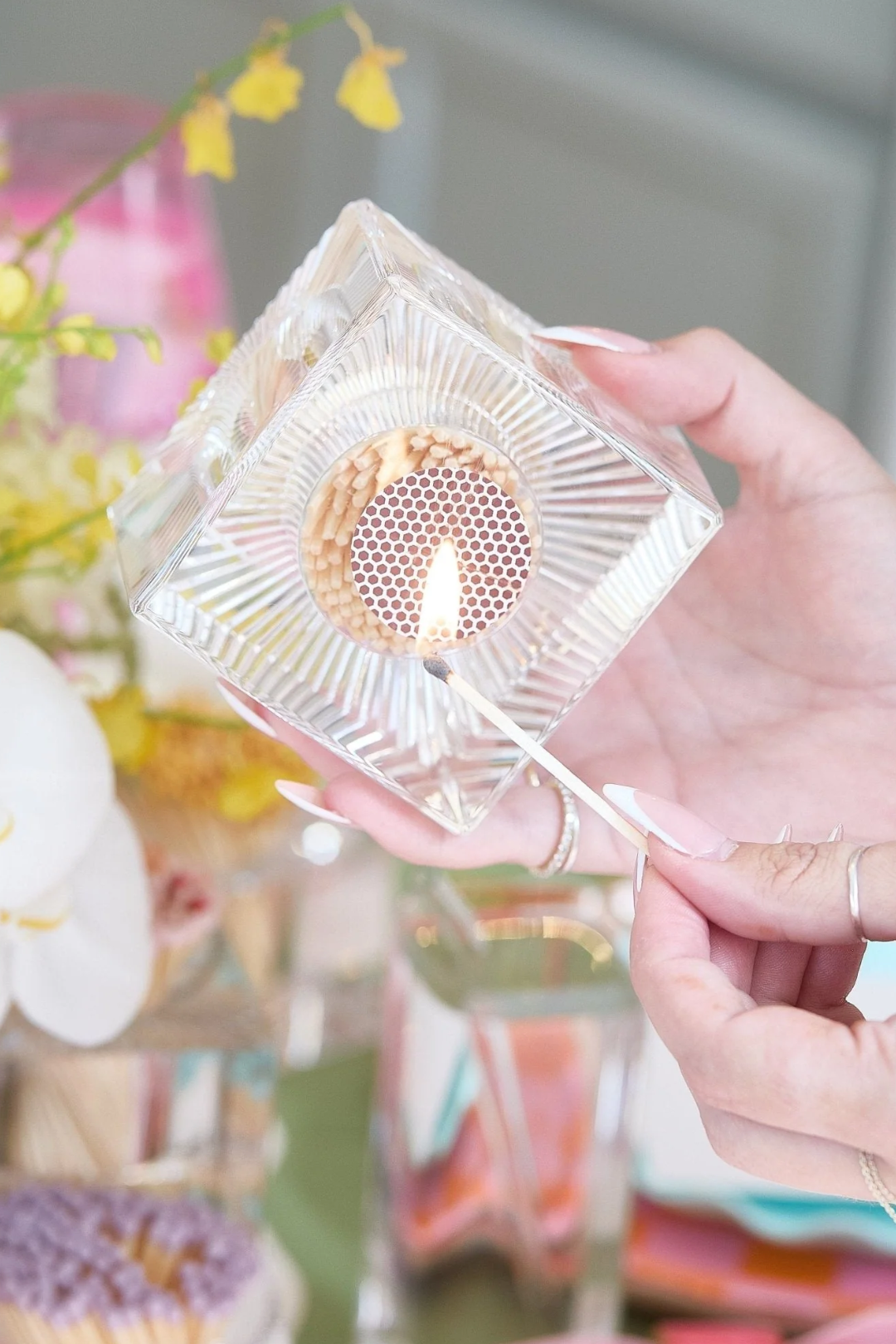 Light up your world in style with this Square Match Striker. This chic acrylic match striker isn't just functional—it's a total vibe. With 140 colorful-tipped matches and a built-in striker pad on the bottom, it doubles as decor that instantly elevates your space. Whether it's on your coffee table, vanity, or next to your favorite candle, this little cube adds major "main character energy" to even the smallest spark. Perfect for your candlelit self-care nights, dreamy dinner parties, or that cozy corner of your home that deserves a glow-up moment.