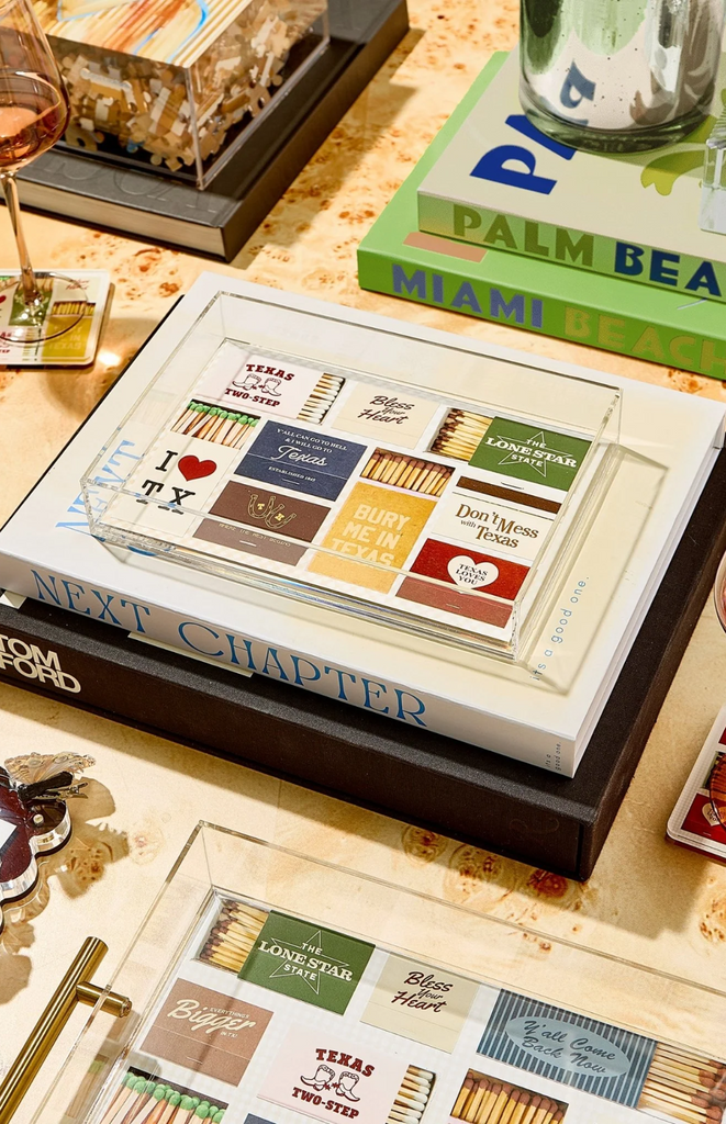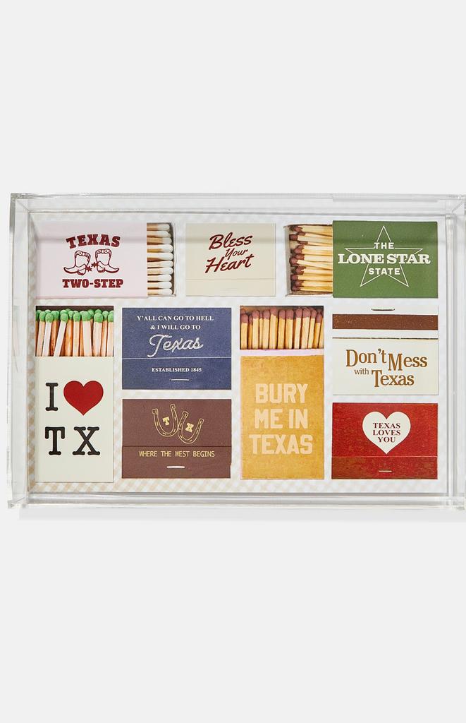 A little bit country, a whole lot of character. The Texas Matchbook Small Tray features a fun, vintage-inspired design that tips its hat to the Lone Star state—all printed on durable acrylic that's made to last. This item is perfect for adding Texas pride to your table at every party or gathering, or for gifting to proud locals or homesick Texans.