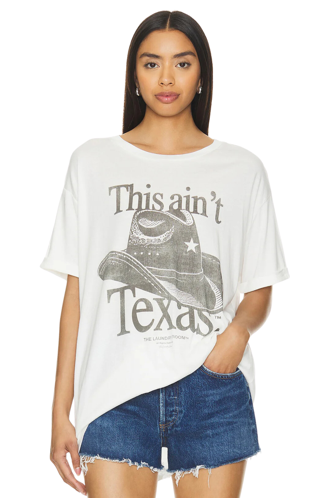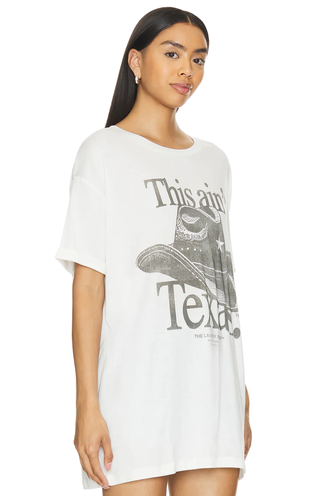 Make a fascinating style statement with This Ain't Texas Oversized Tee from The Laundry Room. It is made of a luxuriously soft, smooth, and lightweight fabric with a crew neckline, cuffed sleeves, and a graphic inspired by Queen B's music. Perfect for errands, hanging out with friends, or just relaxing at home.