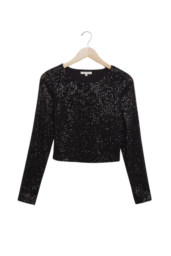 Turn heads at any party you will attend with this Aurora Sequin Top by Z Supply. This fitted cropped top is made of Stretch Sequin fabric with an open neckline and long sleeves. Perfect to wear for dinner dates, cocktails, and holiday events.