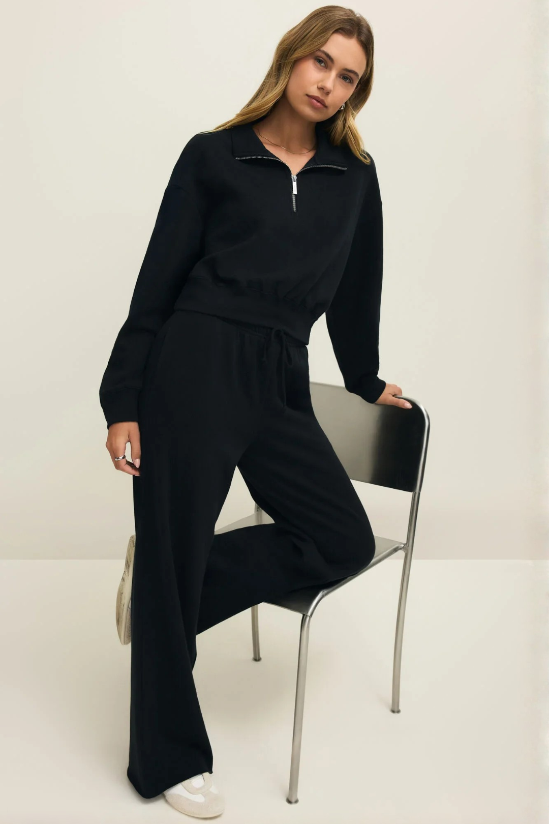 Pair it with Downtown Half Zip Sweatshirt, sunglasses, delicate jewelry, and sneakers for a laid-back luxe vibe.