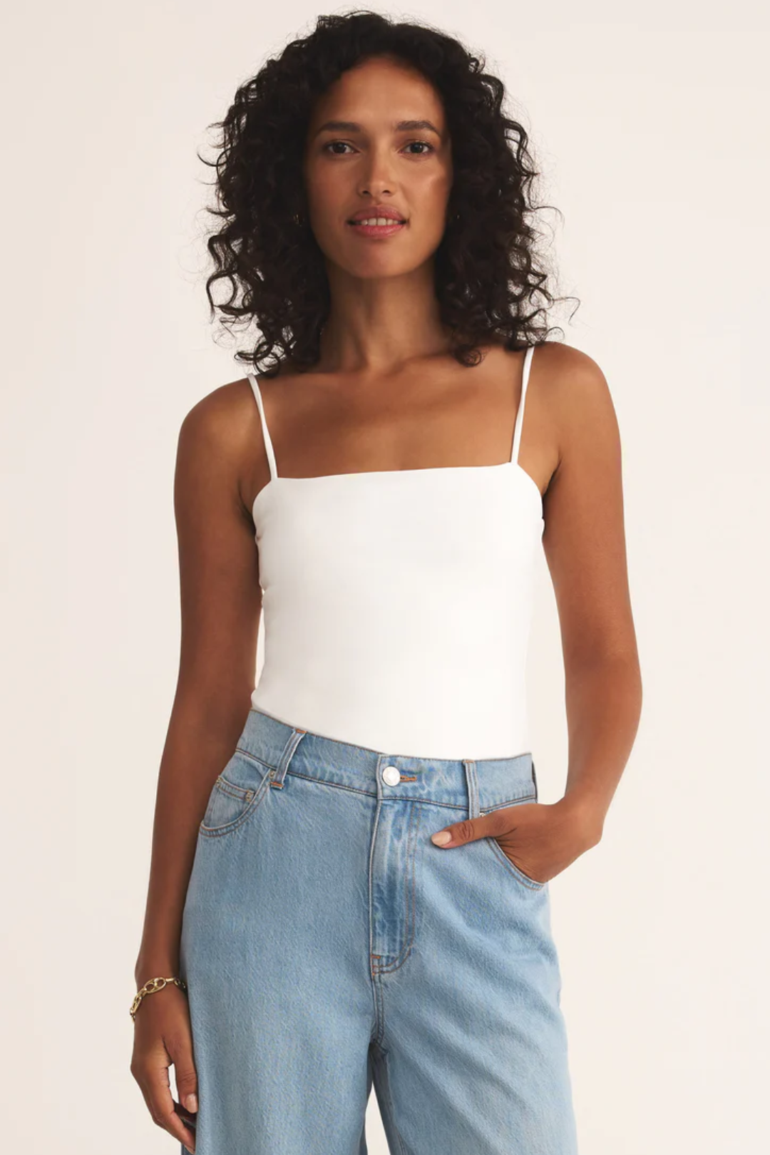 Elevate your everyday essentials with the Lane Luxe Bodysuit. Designed with a sleek, straight neckline and flattering silhouette, this piece brings effortless style to any look. The sleeveless design and adjustable spaghetti straps offer both comfort and customization, while the snap closure ensures a smooth, stay-put fit. Perfect for layering or wearing solo, this bodysuit transitions seamlessly from day to night.